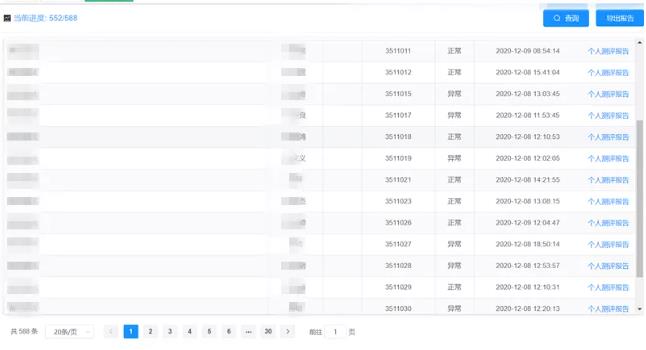 通過心理測(cè)評(píng),可以在后臺(tái)查看心理測(cè)評(píng)報(bào)告,并過濾篩選出測(cè)評(píng)報(bào)告異常的人員,這些人員即為心理危機(jī)預(yù)警的人員,需要重點(diǎn)關(guān)注和輔導(dǎo)。