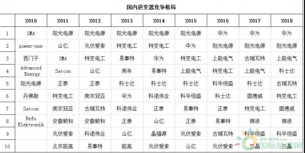 總結: 1、國產逆變器很爭氣! 2010年之前,國內逆變器除了陽光電源外,基本上是國外逆變器,到2011年只有兩三家,2013年之后,就很少見到國外的逆變器; 2、雙巨頭局面形成! 2015年之前是陽光電源一家獨大,2015年之后是華為與陽光電源兩雄爭霸。